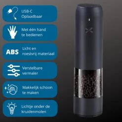 GOV Elektrische Peper- En Zoutmolen Zwart XL Set Oplaadbaar – Pepermolen – Peper En Zoutstel
