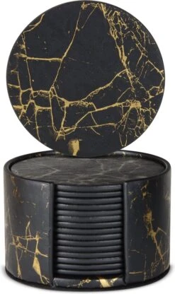 · Met bijpassende houder – Om de onderzetters op een stijlvolle manier op te kunnen bergen wordt de set geleverd met een bijpassende houder.