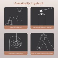 Ook heeft de molen een grote capaciteit van 170ml, zodat je hem niet elke 2 dagen hoeft bij te vullen. Trouwens, het bijvullen gaat ook nog eens erg gemakkelijk door even de bovenkant los te draaien!