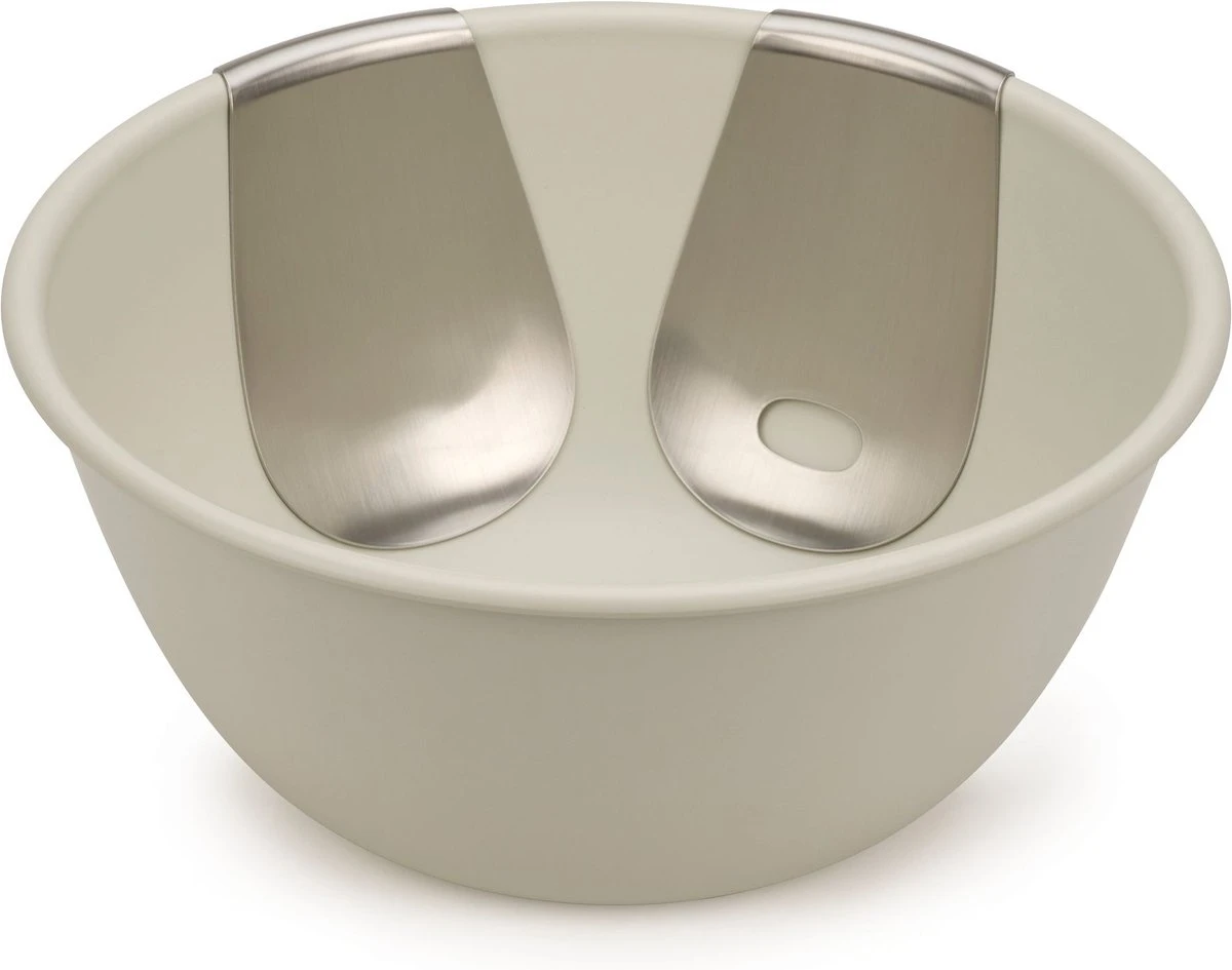 Met deze Uno saladeschaal set van Joseph Joseph is het zoeken naar saladebestek voortaan verleden tijd. De duurzame en slijtvaste saladeschaal is namelijk voorzien met RVS saladebestek welke op de zijkant van de schaal gehangen kunnen worden. Hierdoor creëer je extra ruimte in de keukenlade en heb je gelijk alles bij de hand. De schaal heeft een diameter van 30 cm en is ideaal voor het serveren van salades, pasta’s en rijstgerechten. Na gebruik kunnen de onderdelen worden schoongemaakt in de vaatwasser. Pluspunten: Duurzaam en slijtvast Bestek kan op de rand gehangen worden voor ruimtebesparing Geschikt voor de vaatwasser Minpunt: Niet geschikt voor de magnetron of oven Met de vrolijke en eigentijdse producten van Joseph Joseph fleur je iedere keuken en badkamer op. Van een gezellige saladeschaal tot een strak design toiletborstel, het merk biedt comfort en design. De producten zijn stevig en vaatwasmachinebestendig en eenvoudig op te bergen. Joseph Joseph staat voor een uniek design met een opvallende touch. De artikelen passen in iedere keuken en badkamer terwijl ze allemaal iets eigens hebben. Joseph Joseph hanteert verschillende lijnen en stijlen dus er is voor ieder wat wils. Veiligheid staat bovenaan bij dit merk en de producten zijn dan ook uiterst veilig en comfortabel in gebruik. Het merk maakt gebruik van de nieuwste technologische snufjes waardoor je snel en efficiënt te werk gaat. Combineer stijl met comfort en kies voor de producten van Joseph Joseph.